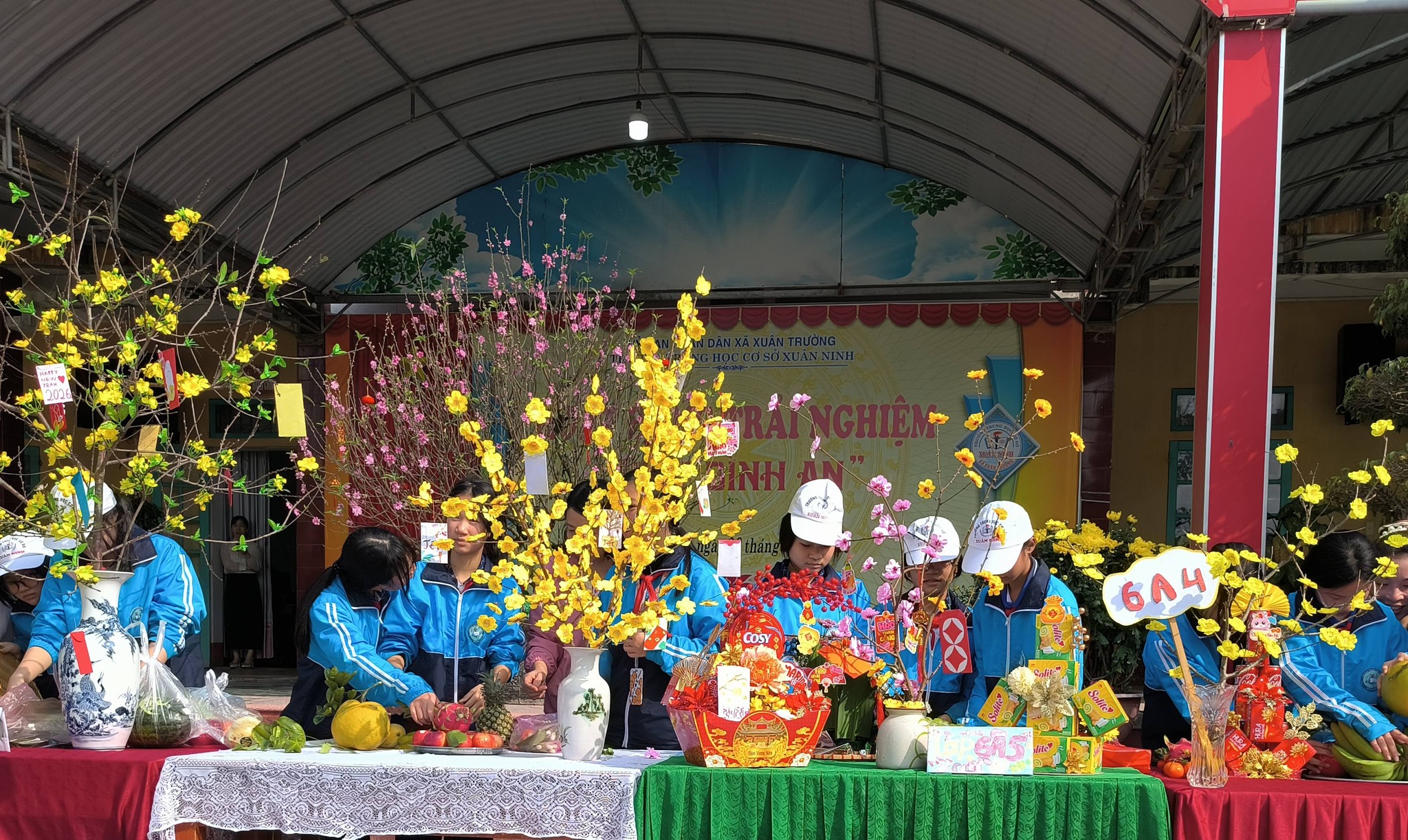 Trong không khí rộn ràng những ngày cuối năm, ngày 6/2/2026, trường THCS Xuân Ninh đã tổ chức hoạt động trải nghiệm Tết Bình An với nhiều nội dung ý nghĩa. Chương trình được mở màn bằng các tiết mục văn nghệ mang đậm sắc xuân, tiếp nối là phần thi trang trí mâm quả đầy sáng tạo và các trò chơi dân gian sôi nổi, hào hứng.