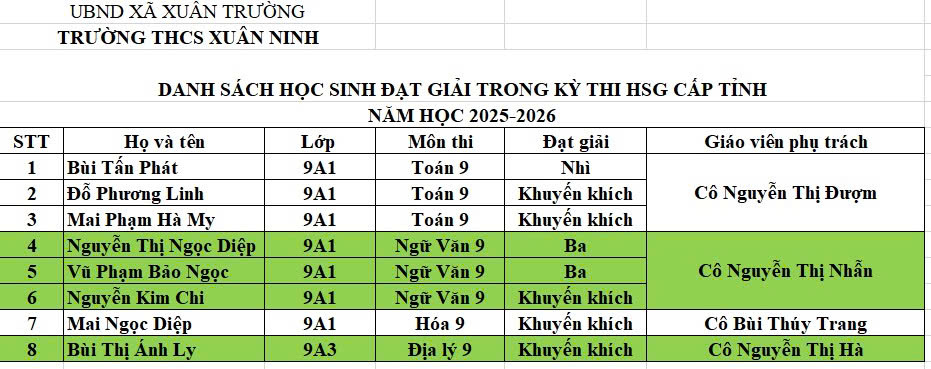Thành tích hôm nay không chỉ là kết quả của trí tuệ và sự cố gắng, mà còn là sự kết tinh của tình thầy trò, của sự đồng hành từ gia đình và nhà trường. Đây sẽ là động lực to lớn để thầy và trò trường THCS Xuân Ninh tiếp tục phát huy truyền thống hiếu học, quyết tâm gặt hái thêm nhiều thành công hơn nữa trong những năm học tiếp theo.